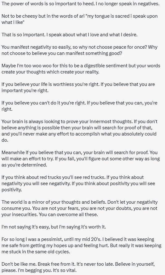 It stresses me out so badly to see people so willing to speak negativity into existence.